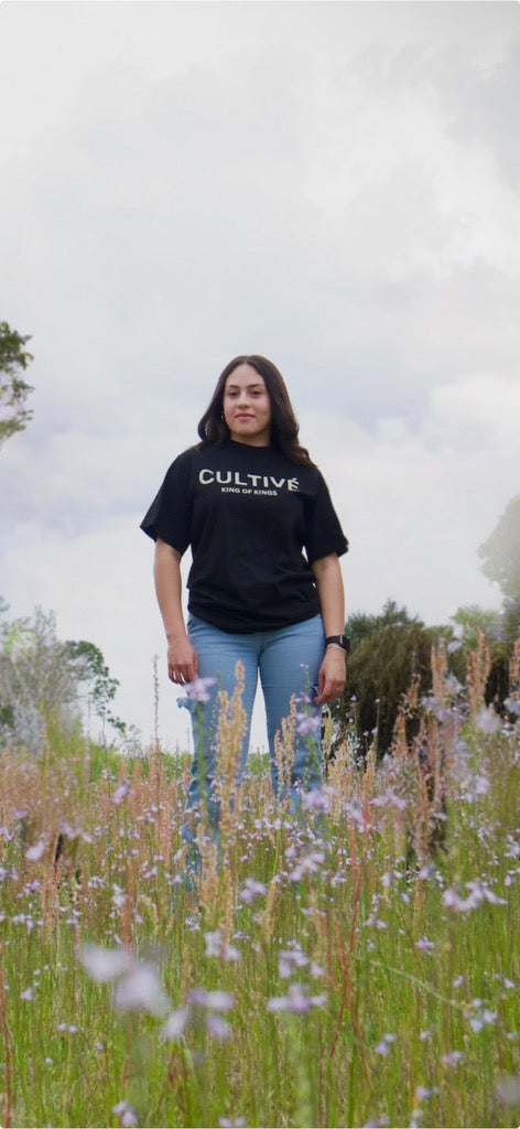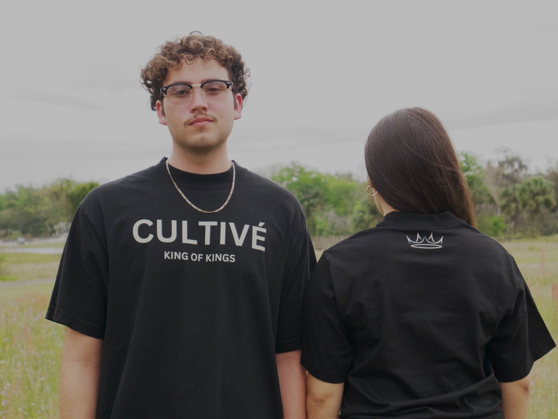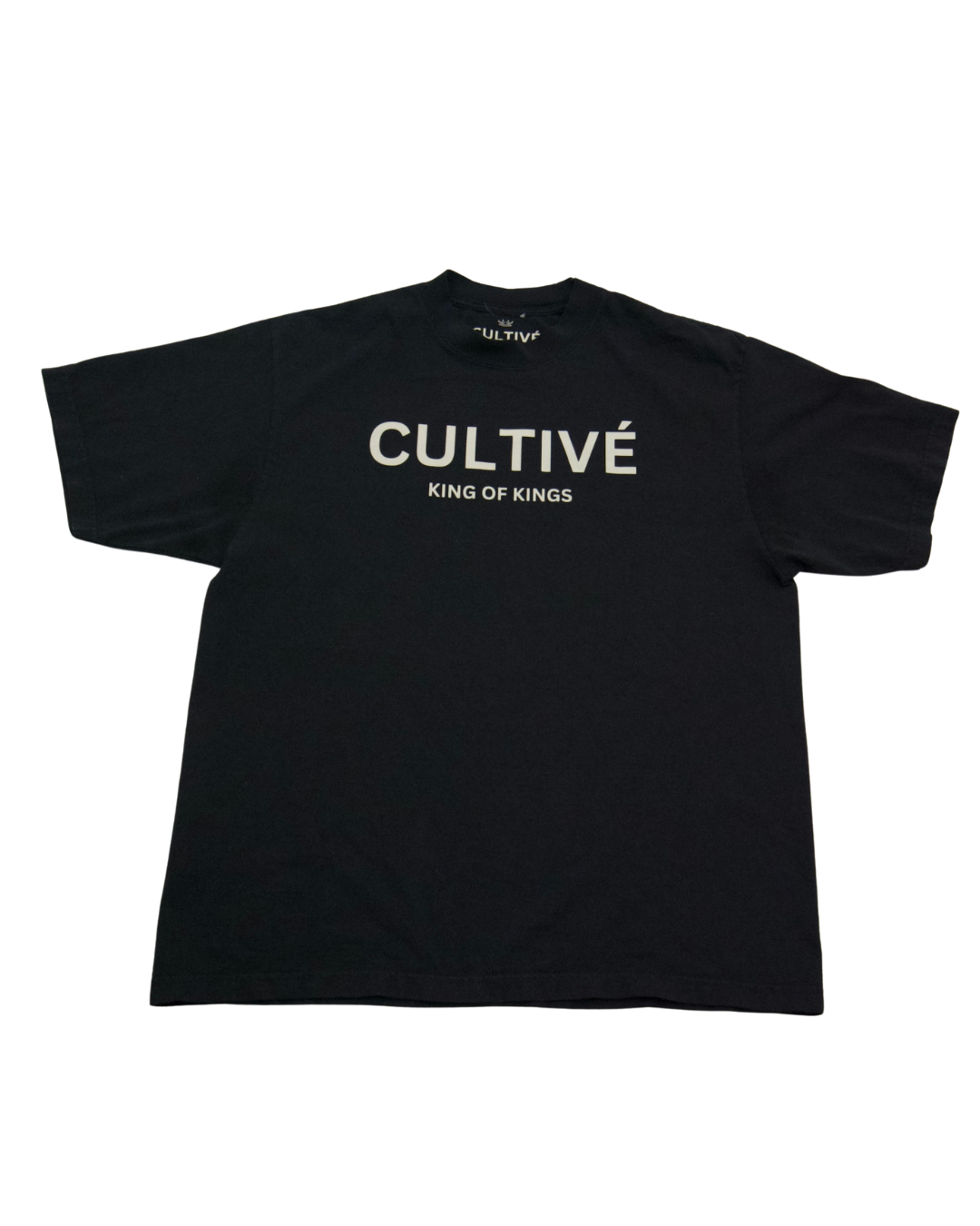 Luxury Heavy Cotton Oversized Cultivé King of Kings Black Short Sleeve T-Shirt With Cream Lettering