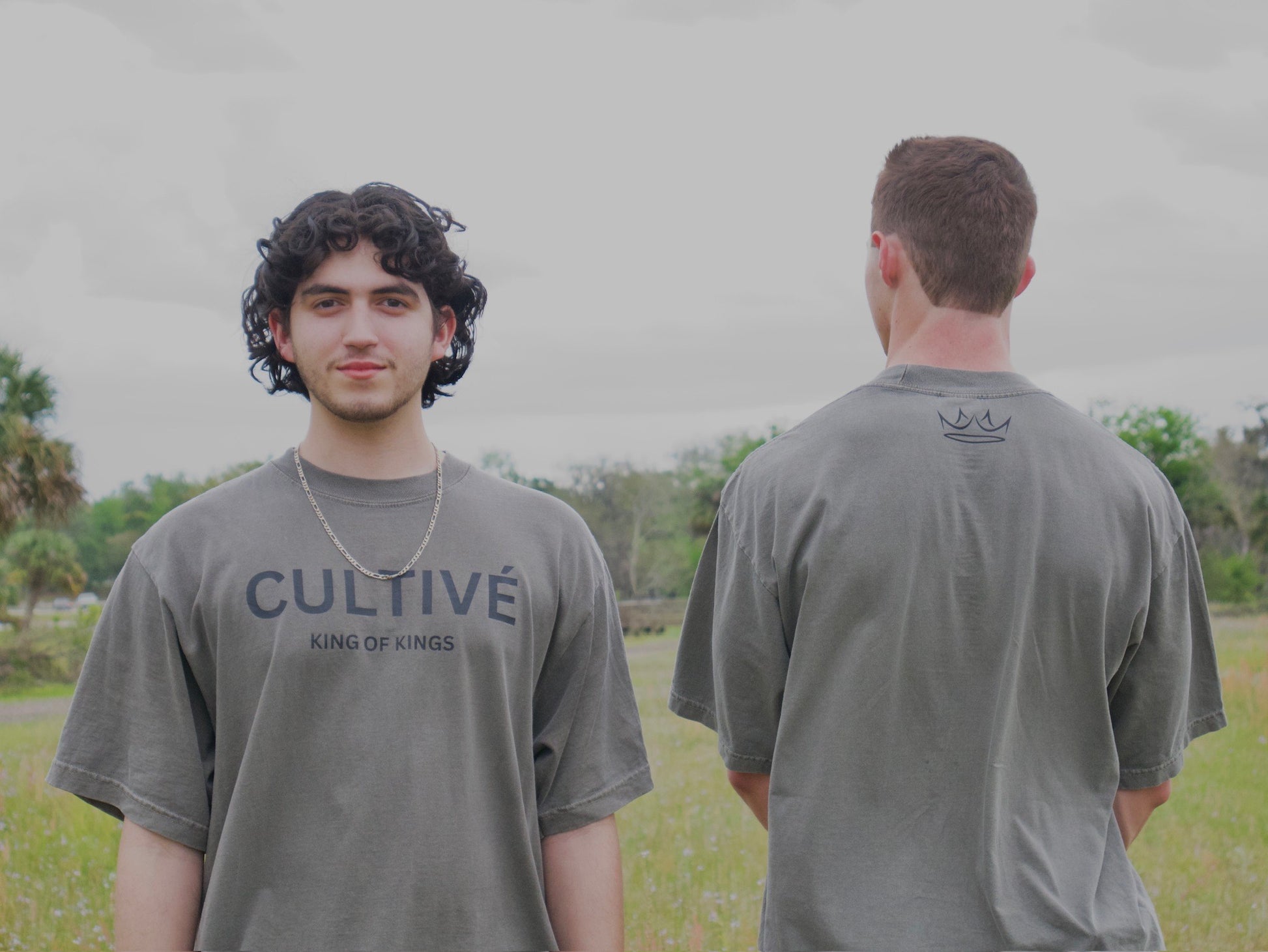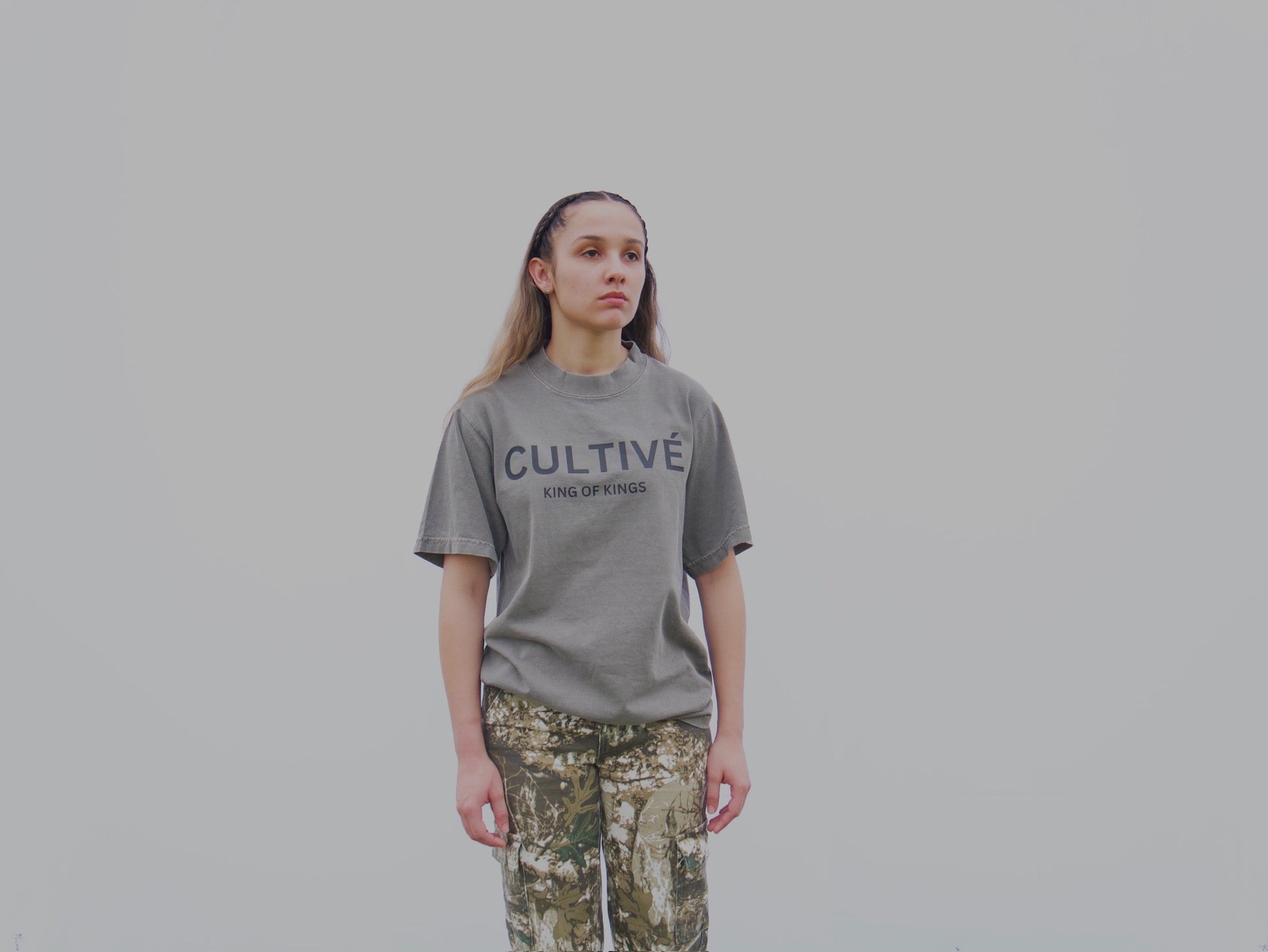 Luxury Heavy Cotton Oversized Cultivé King of Kings Grey Short Sleeve T-Shirt With Black Lettering